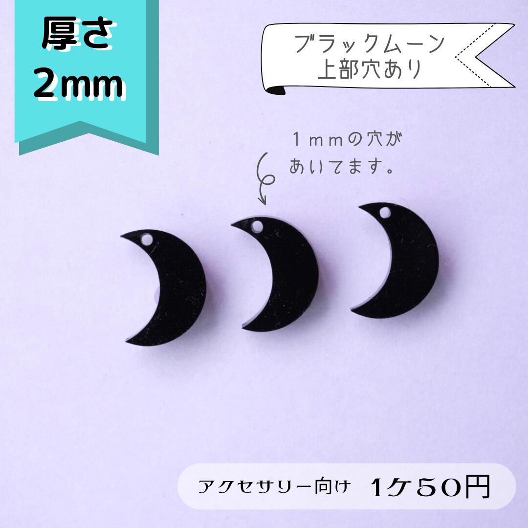 【324】ブラックムーン 上部穴あり (アクセサリー向き) 黒色アクリルパーツ 2mm