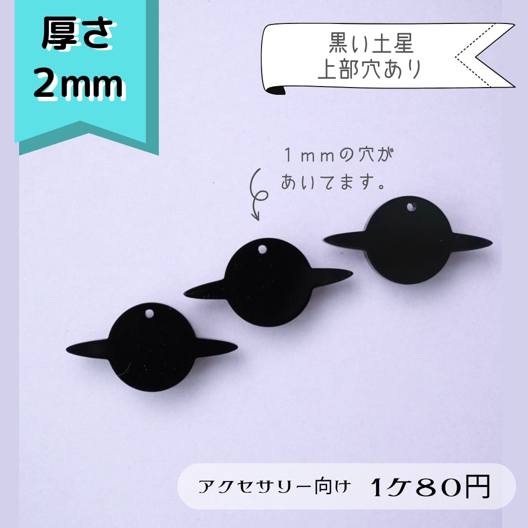 【322】黒い土星 (アクセサリー向き) 黒色アクリルパーツ 2mm