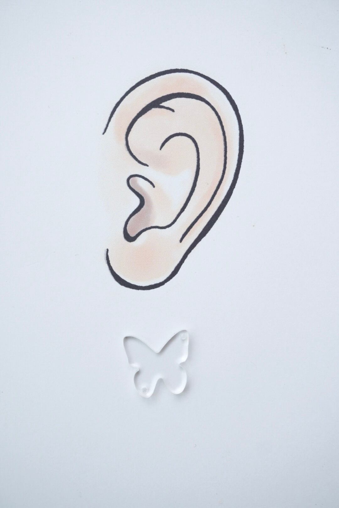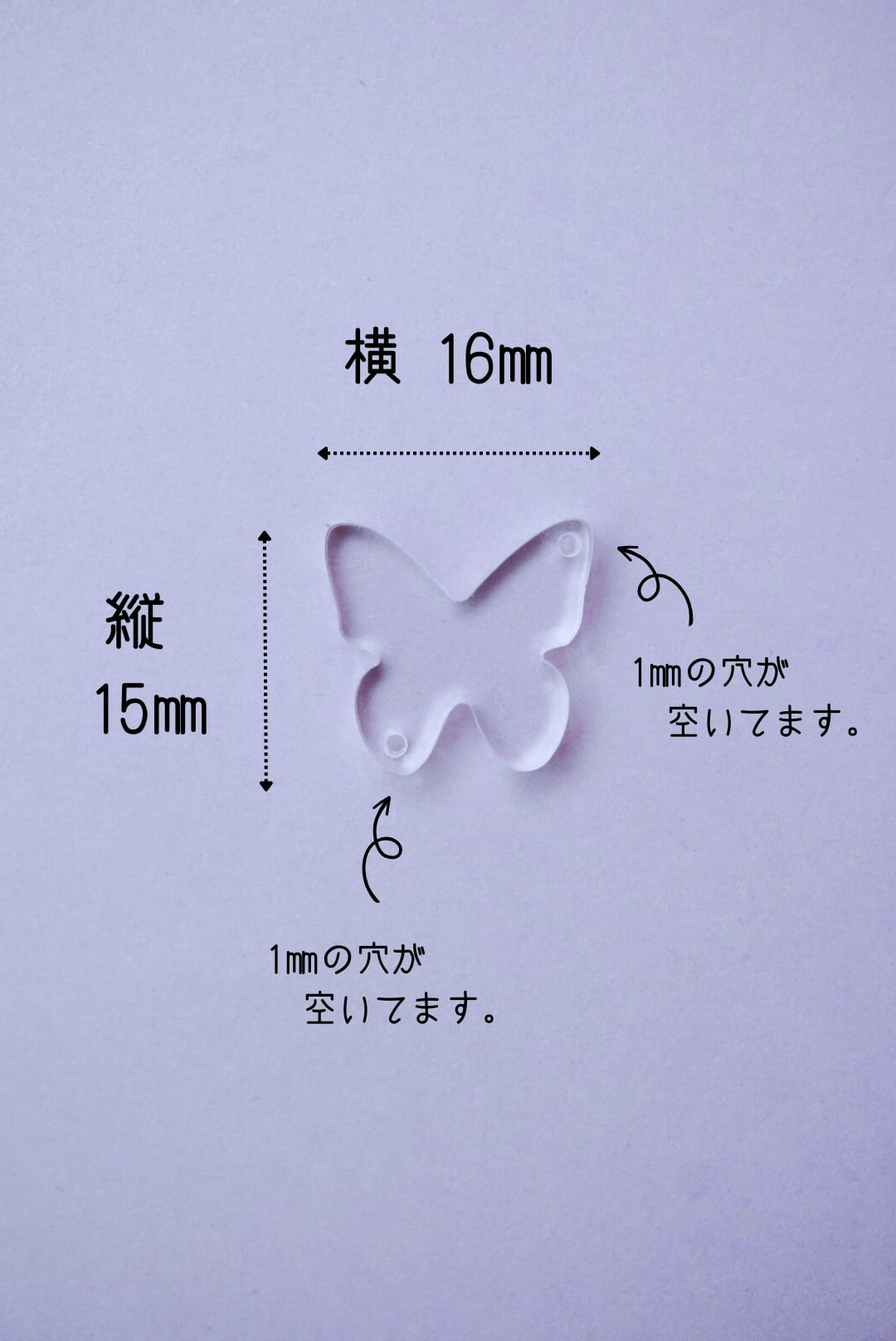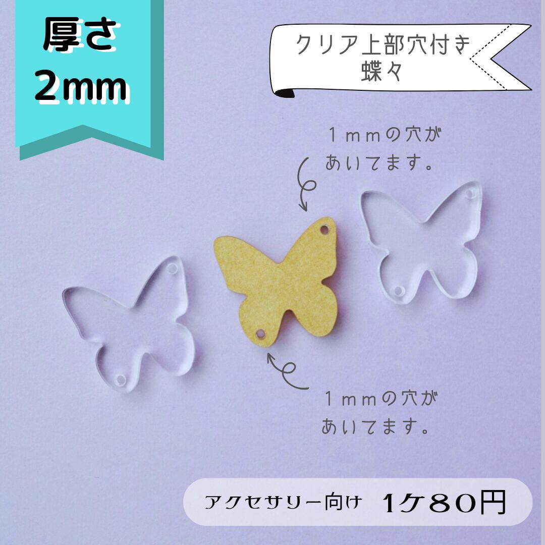 【320】クリア上下穴付き蝶々 (アクセサリー向き) クリアアクリルパーツ 2mm
