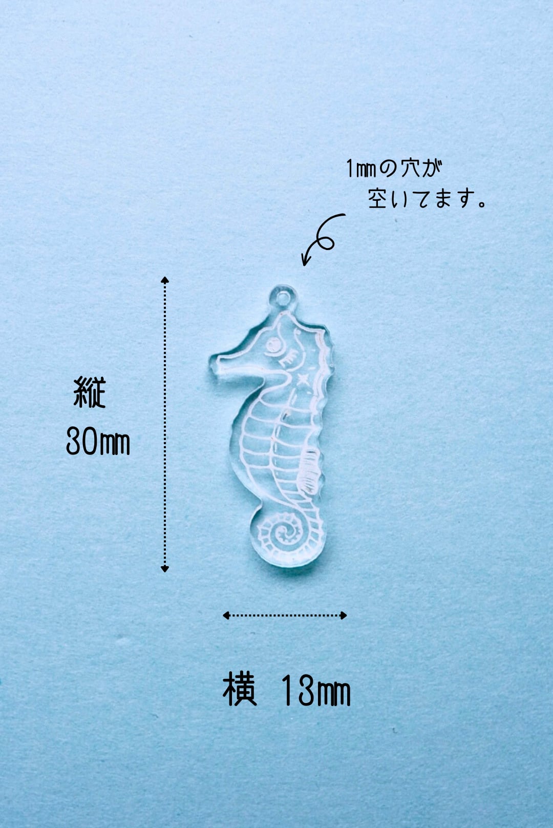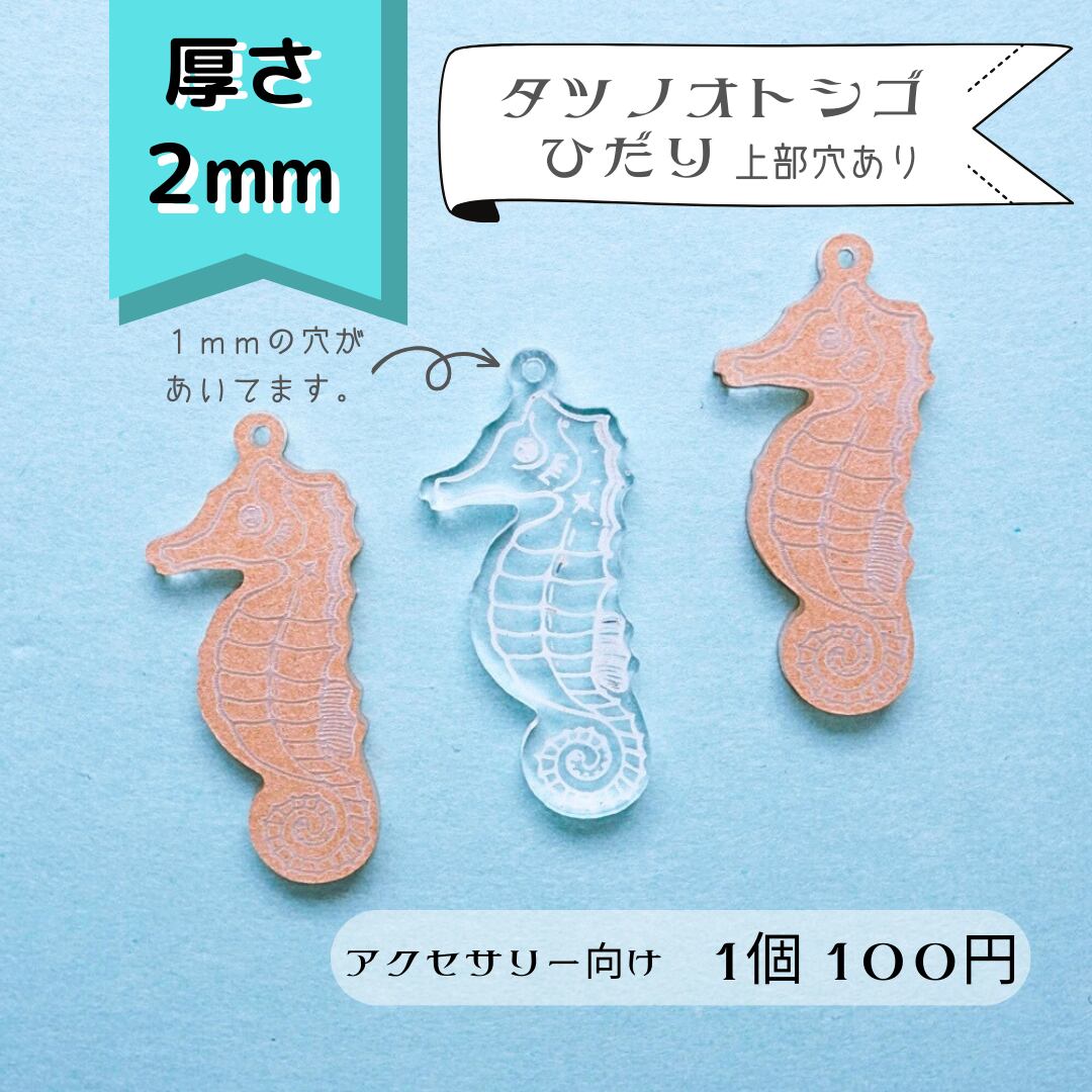 【214】タツノオトシゴ 左むき 穴あり(アクセサリー向き) 透明アクリルパーツ 2mm
