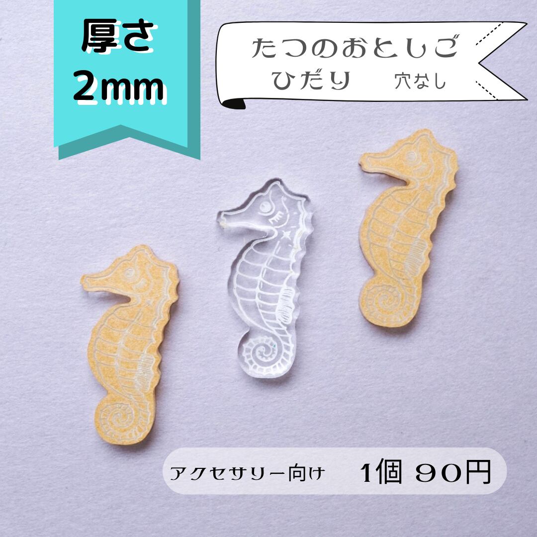 【215】タツノオトシゴ 左むき 穴なし(アクセサリー向き) 透明アクリルパーツ 2mm