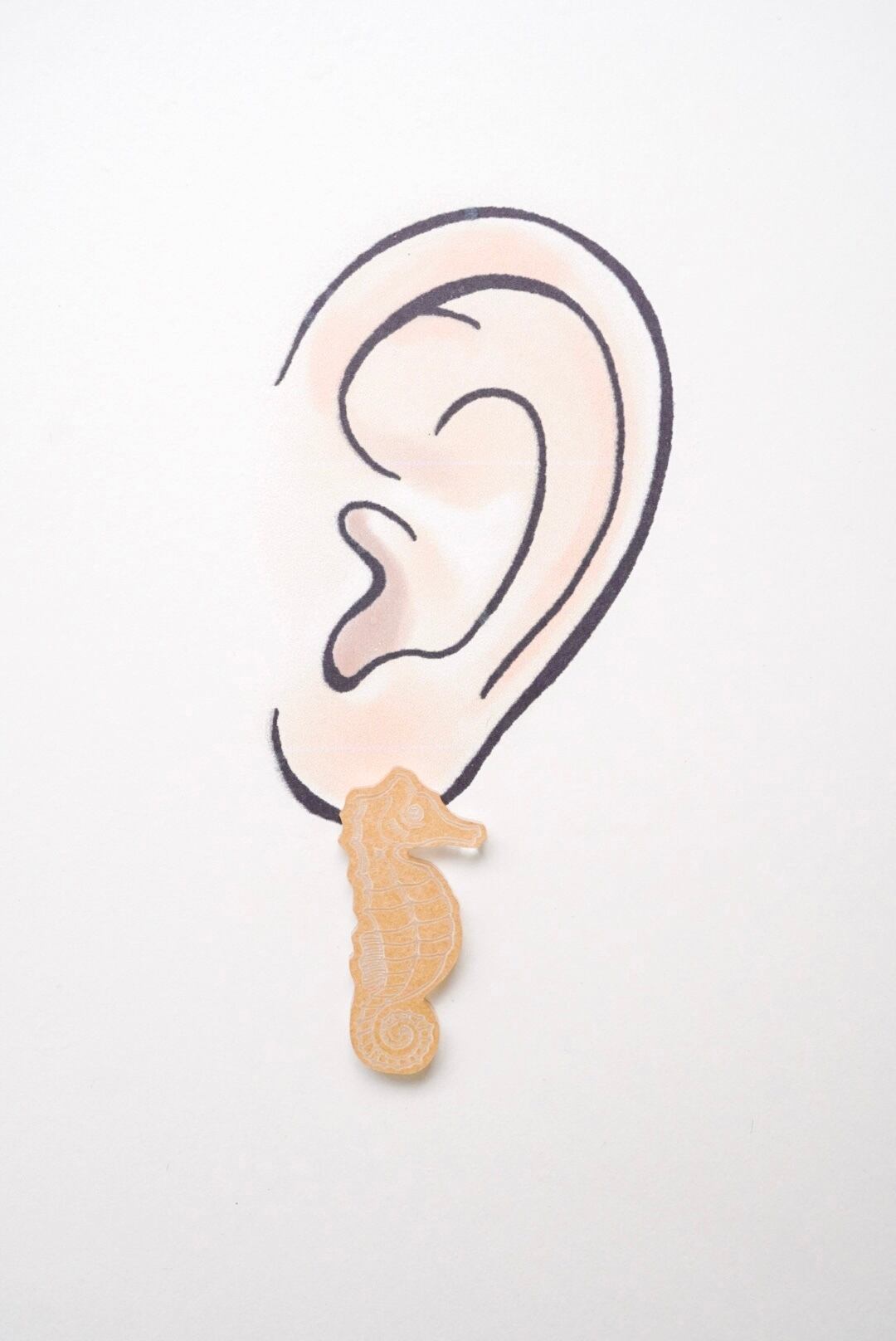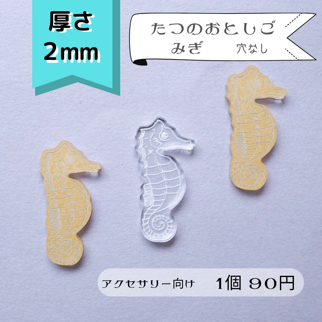【215B】タツノオトシゴ 右むき 穴なし(アクセサリー向き) 透明アクリルパーツ 2mm